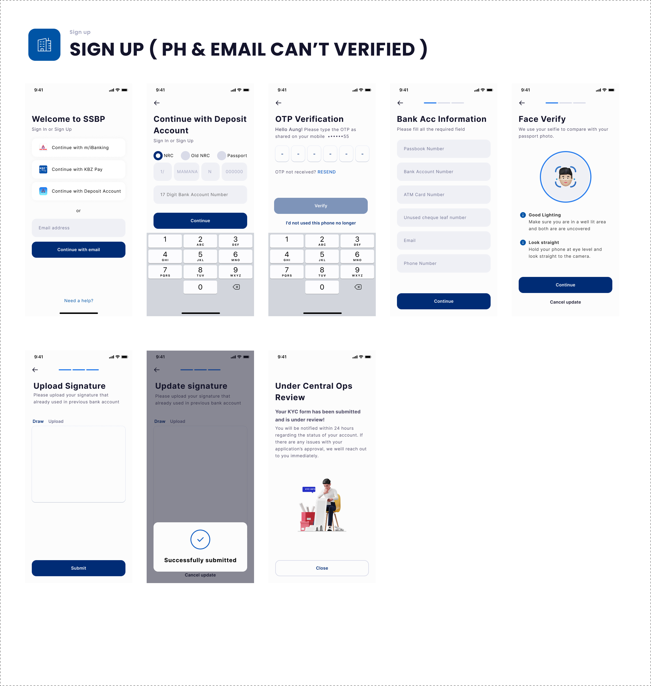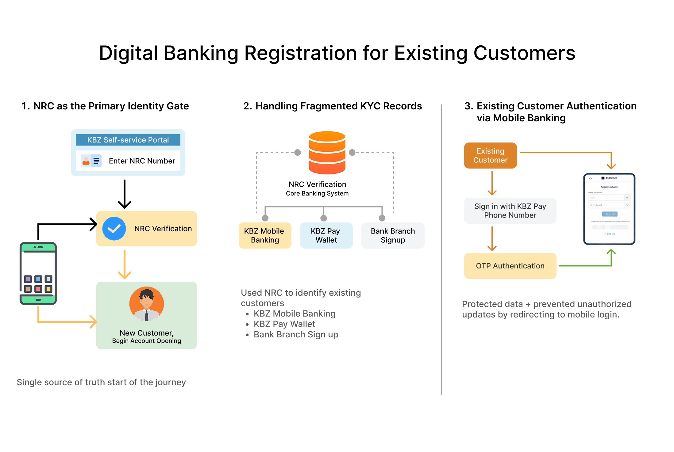 Existing KBZ customers already have verified bank accounts and KYC records. However, activating digital banking required users to: